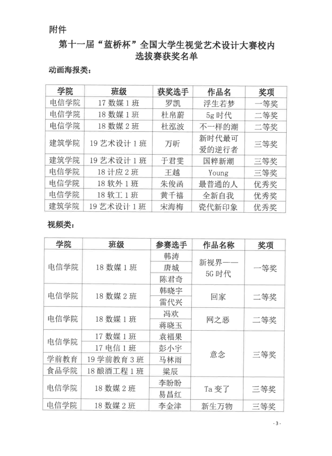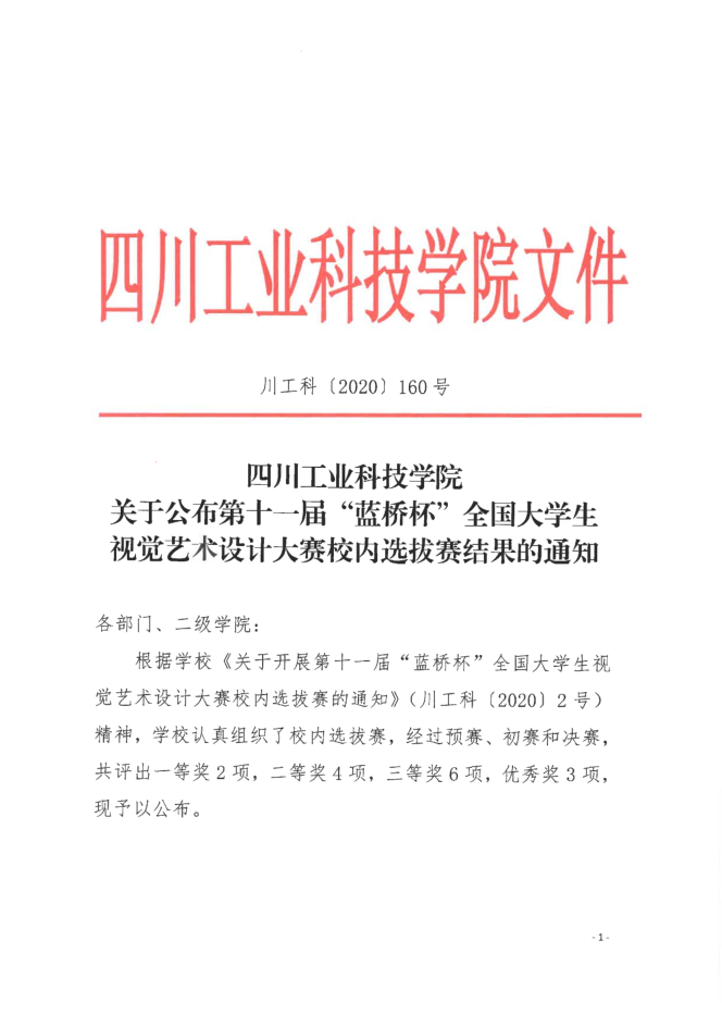 四川工业科技学院关于公布第十一届“蓝桥杯”全国大学生视觉艺术设计大赛校内选拔赛结果的通知