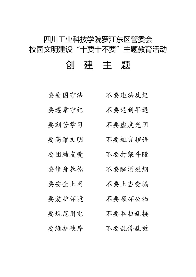 四川工业科技学院罗江东区管委会 校园文明建设“十要十不要”主题教育活动倡议书