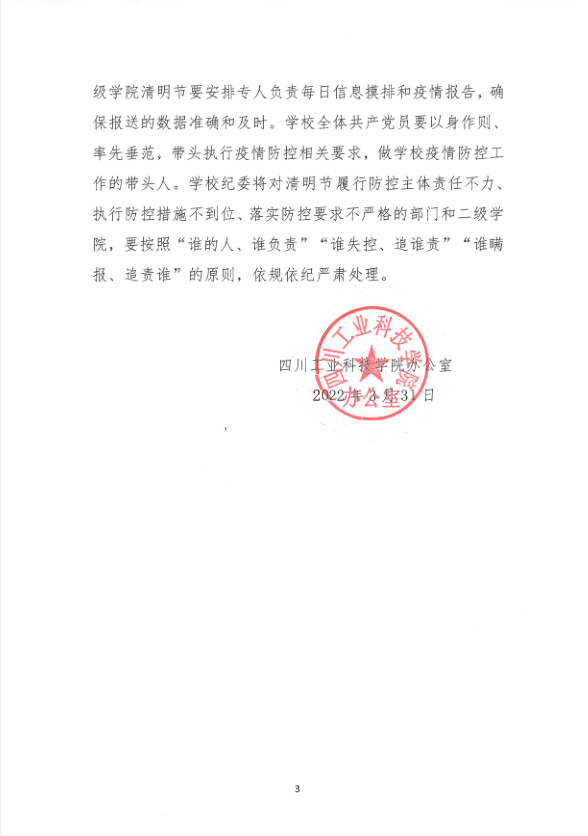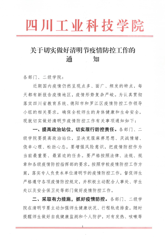 上一篇:四川工业科技学院关于进一步做好近期疫情防控工作的紧急通知