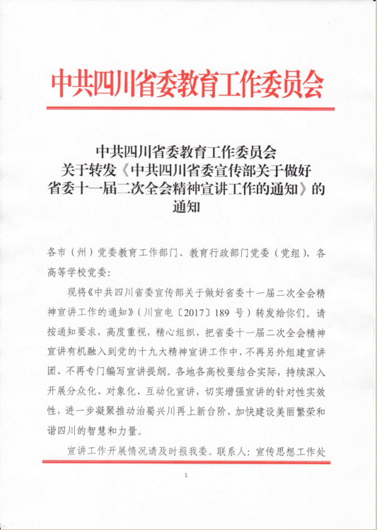 中国四川省委教育工作委员会关于转发《中共四川省委宣传部关于做好省委十一届二次全会精神宣讲工作的通知》的通知