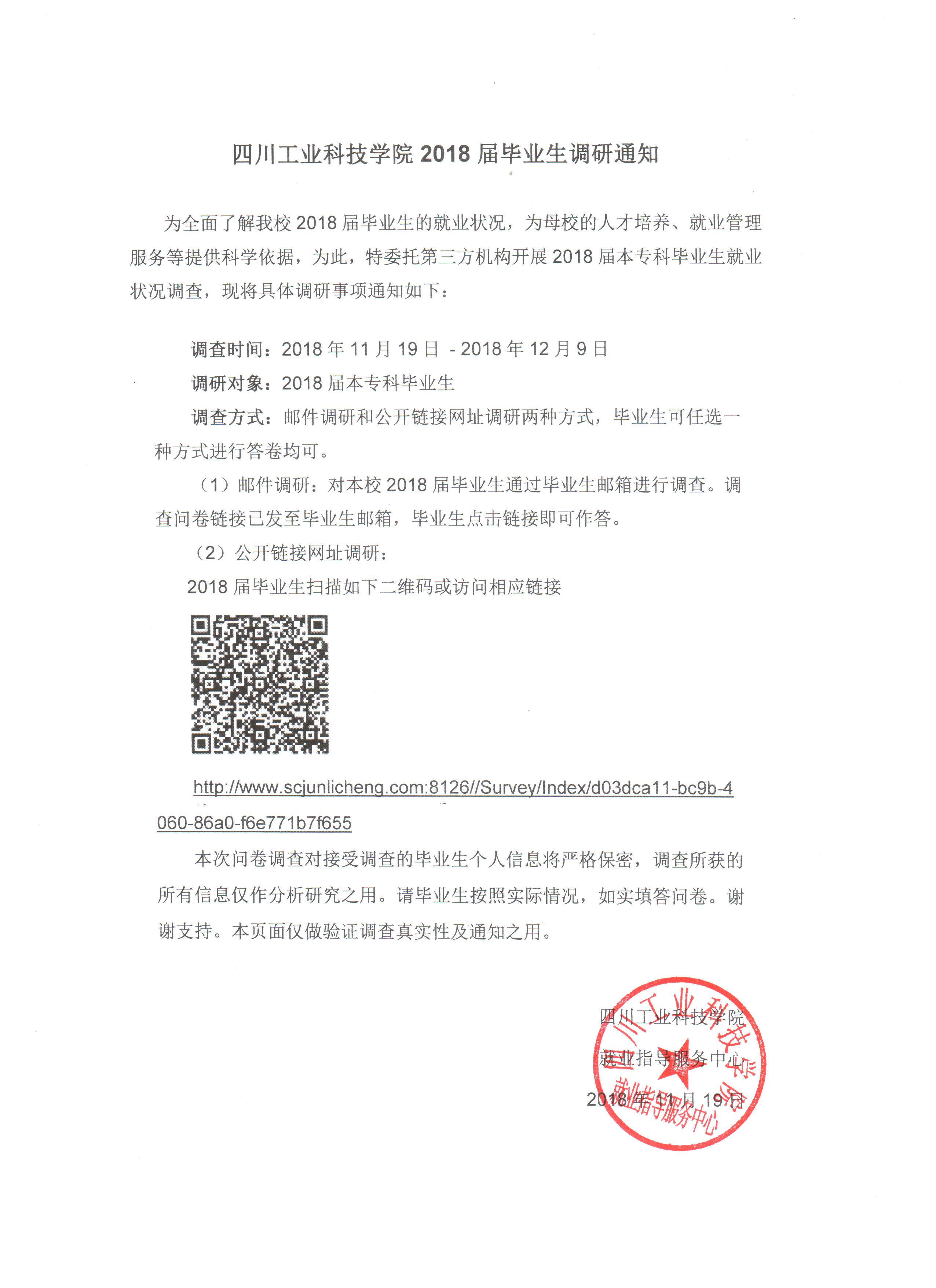 为全面了解我校2018届毕业生的就业状况,为母校的人才培养、就业管理服务等提供科学依据,为此,特委托第三方机构开展2018届本专科毕业生就业状况调查,现将具体调研事项通知如下: