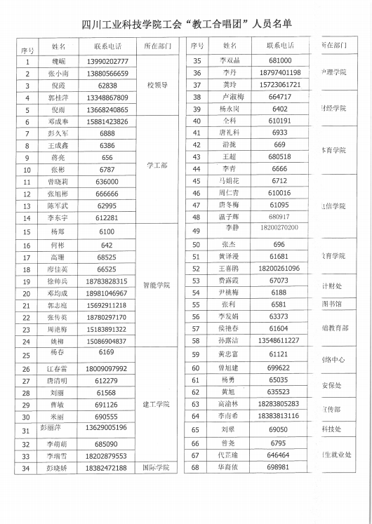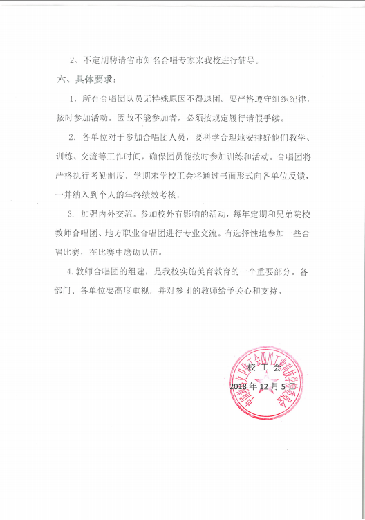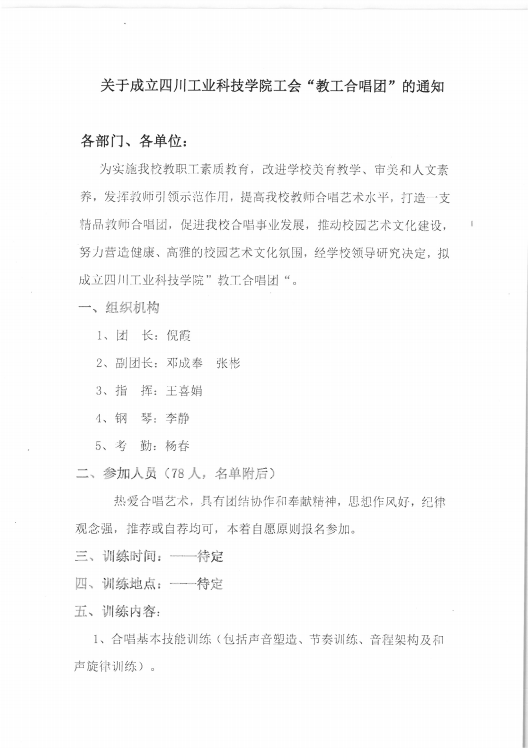 关于成立四川工业科技学院工会“教工合唱团”的通知