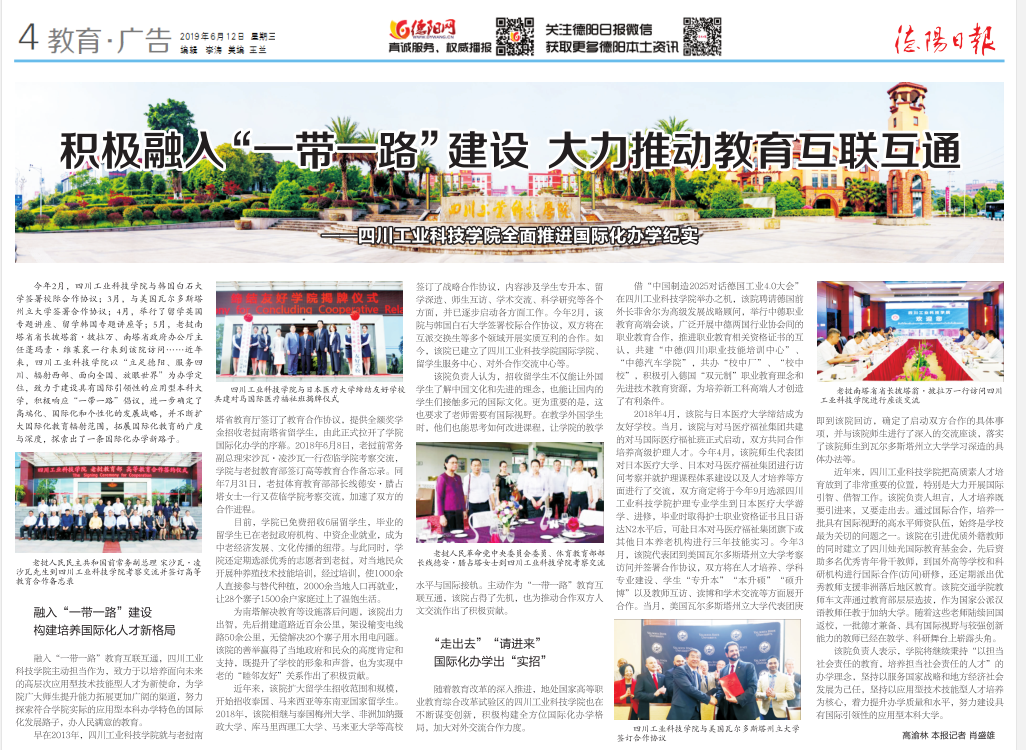 【德阳日报】积极融入“一带一路”建设 大力推动教育互联互通——四川工业科技学院全面推进国际化办学纪实