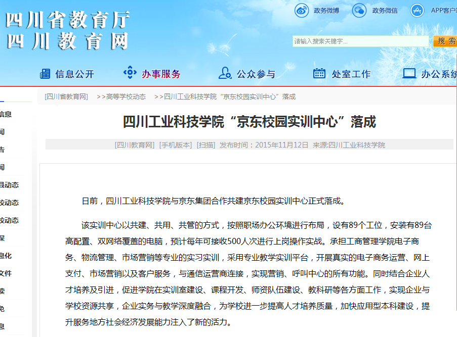 日前,四川工业科技学院与京东集团合作共建京东校园实训中心正式落成。