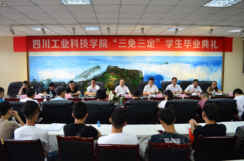 一年求学路,一生工科情。7月8日上午,四川工业科技学院举行首届“三免三定”学生毕业典礼。党委书记、校长唐健禾,副校长郭桂萍以及相关部门负责人,辅导员与50名“三免三定”毕业生欢聚一堂,共同见证首届“三免三定”学生毕业的重要时刻。