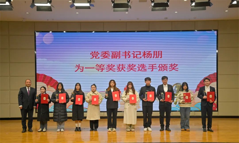 党委副书记杨朋为一等奖获奖选手颁奖。