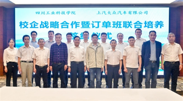 为深化“产学研用”一体发展新路径,促进产业链、专业链、人才链和创新链有效融合,提升人才培养质量和高质量就业,服务新质生产力发展的需要。5月8日,四川工业科技学院与上汽大众汽车有限公司举行校企战略合作暨订单班联合培养签约仪式。上汽大众汽车有限公司人事与组织部执行副总经理陈鑫浩、总监厉广锋、高级经理刘冬、三厂制造部主任牛飞,四川工业科技学院副校长张仁志、陈堂以及德阳农业科技职业学院相关领导出席签约仪式。