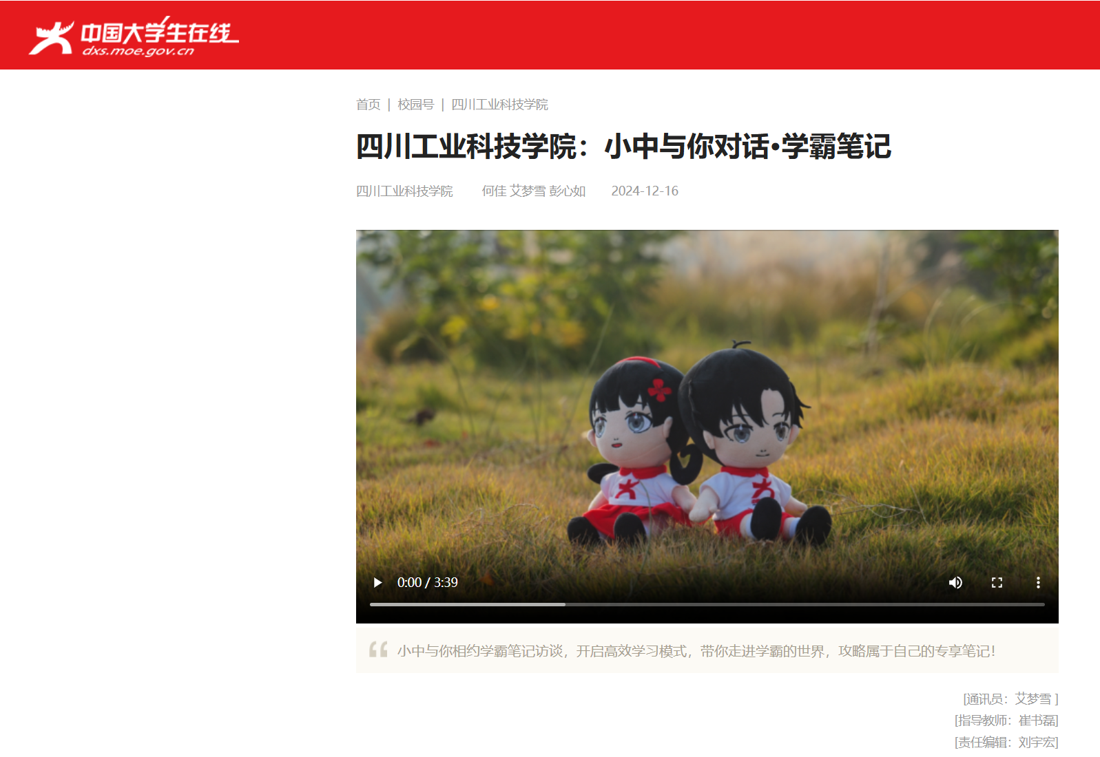 【中国大学生在线】四川工业科技学院:小中与你对话·学霸笔记