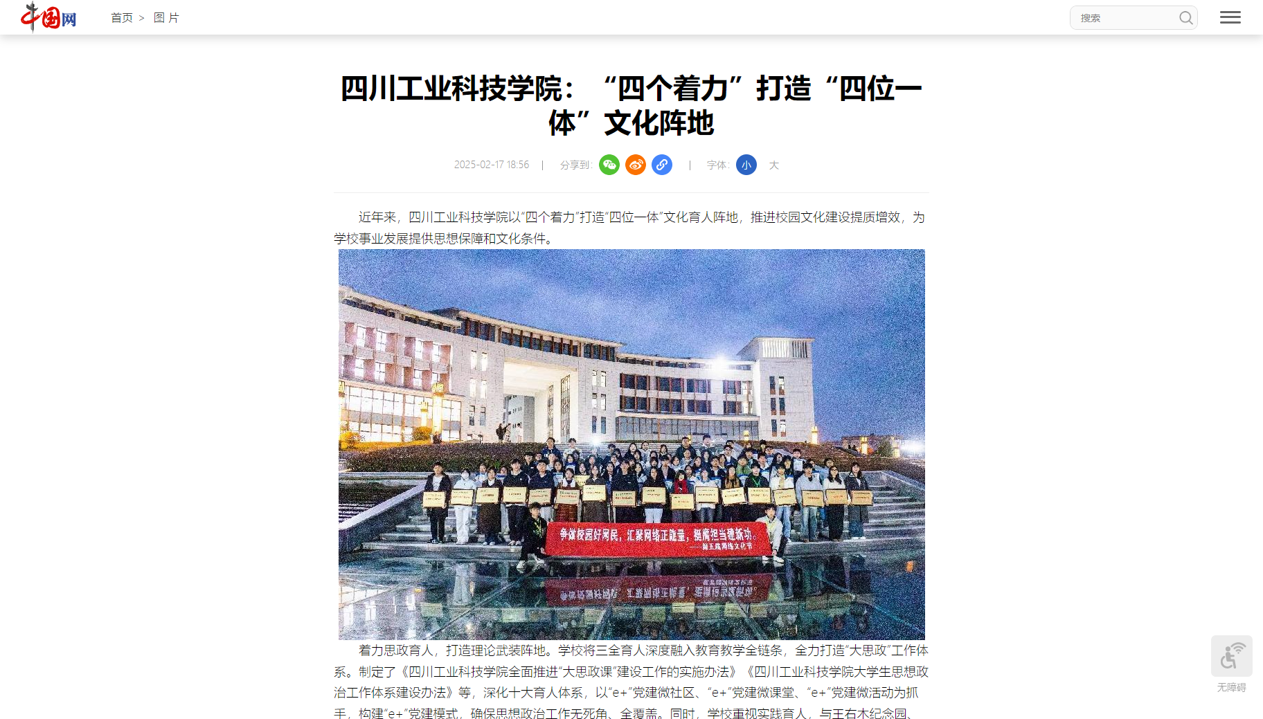 近年来,四川工业科技学院以“四个着力”打造“四位一体”文化育人阵地,推进校园文化建设提质增效,为学校事业发展提供思想保障和文化条件。