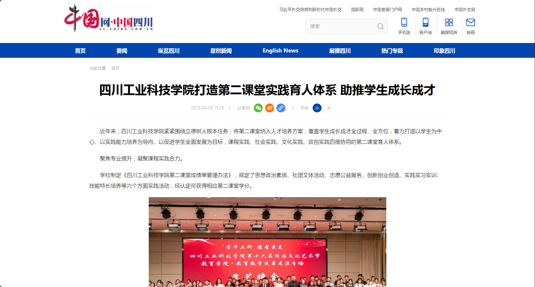 【中国网】四川工业科技学院打造第二课堂实践育人体系  助推学生成长成才