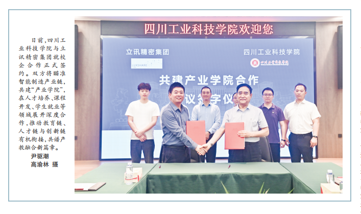日前,四川工业科技学院与立讯精密集团就校企合作正式签约。双方将瞄准智能制造产业链,共建“产业学院”,在人才培养、课程开发、学生就业等领域展开深度合作,推动教育链、人才链与创新链有机衔接,共谱产教融合新篇章。