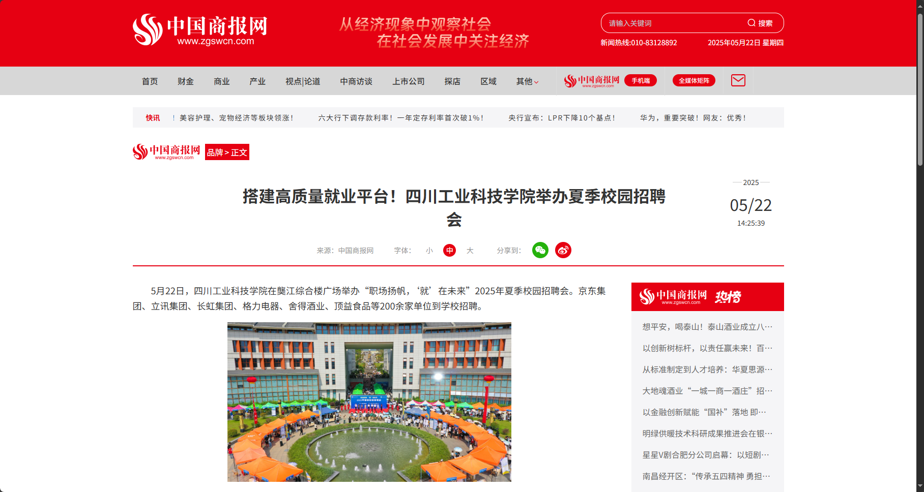 【中国商报网】搭建高质量就业平台!四川工业科技学院举办夏季校园招聘会