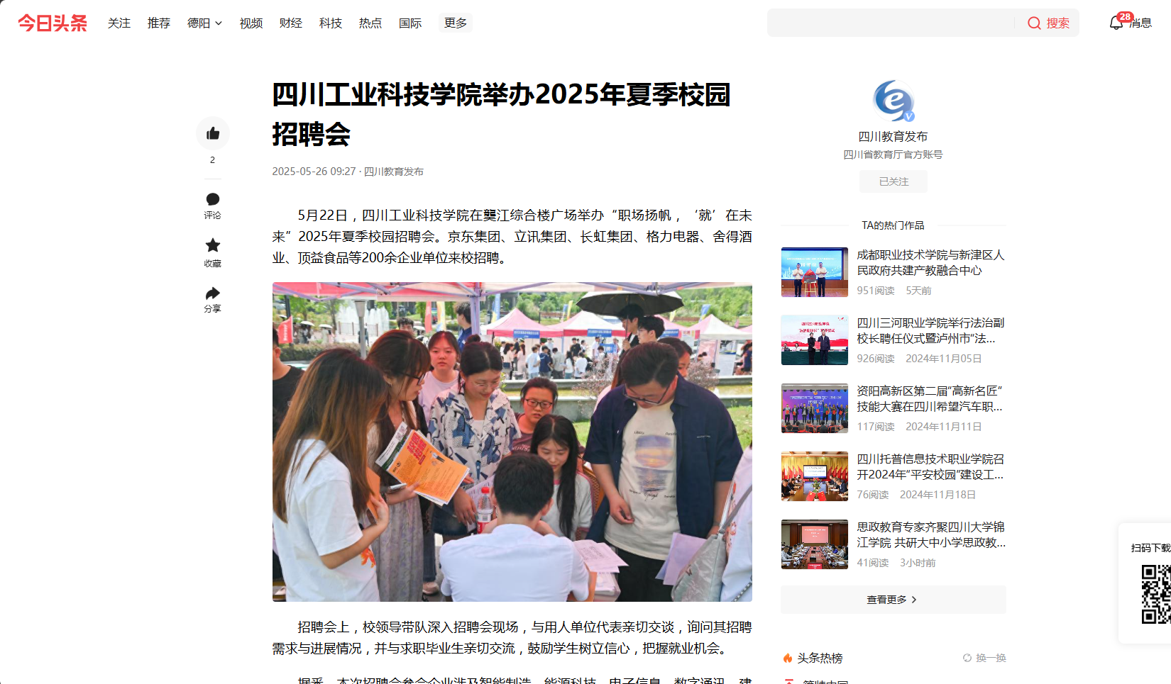 【今日头条】四川工业科技学院举办2025年夏季校园招聘会
