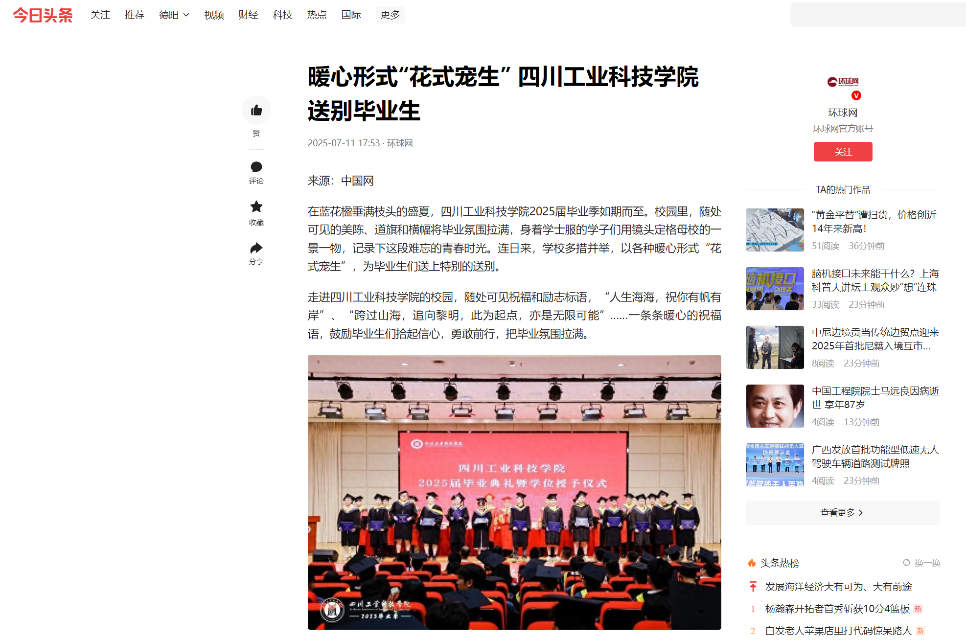 【今日头条】暖心形式“花式宠生”  四川工业科技学院送别毕业生