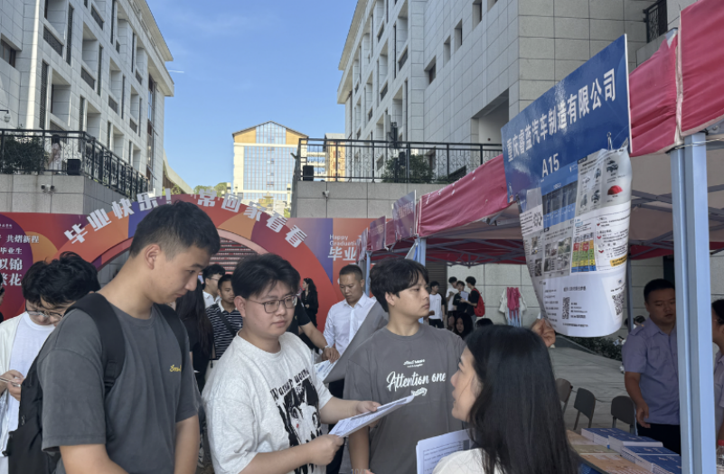 上午9点,毕业典礼的庄严序曲尚未奏响,招聘现场已人头攒动。来自省内外50余家企业携近2000个岗位入驻招聘现场,涵盖信息技术、智能制造、食品饮料、教育文旅、艺术设计等多个领域,既有中国平安、长虹电器、猿辅导等行业龙头,也有当地重点扶持企业。企业招聘台前,HR们耐心解答毕业生疑问,从岗位要求到薪资福利,从职业发展路径到企业文化,细致的讲解让学子们对职场有了更清晰的认知。