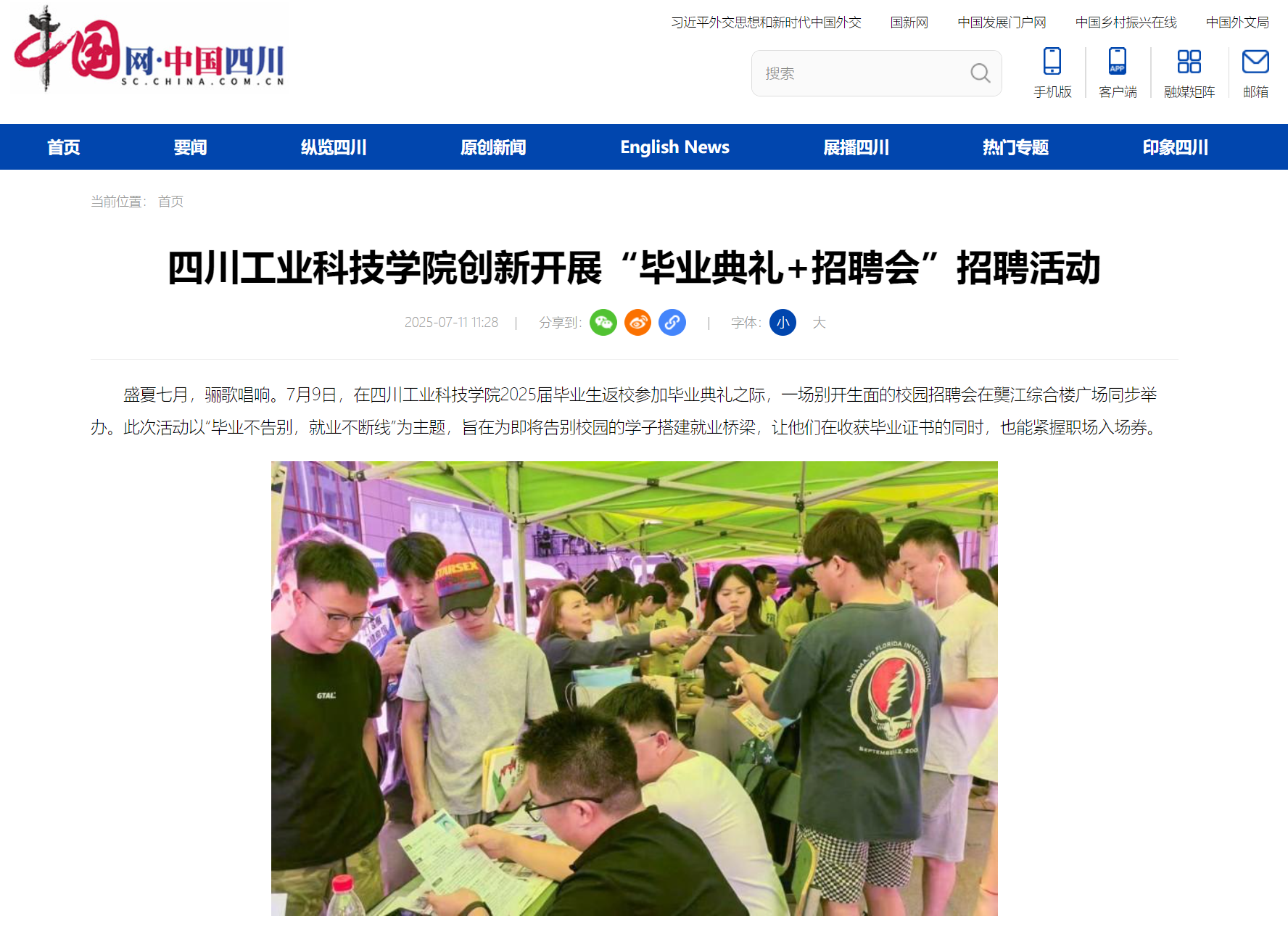 盛夏七月,骊歌唱响。7月9日,在四川工业科技学院2025届毕业生返校参加毕业典礼之际,一场别开生面的校园招聘会在龑江综合楼广场同步举办。此次活动以“毕业不告别,就业不断线”为主题,旨在为即将告别校园的学子搭建就业桥梁,让他们在收获毕业证书的同时,也能紧握职场入场券。