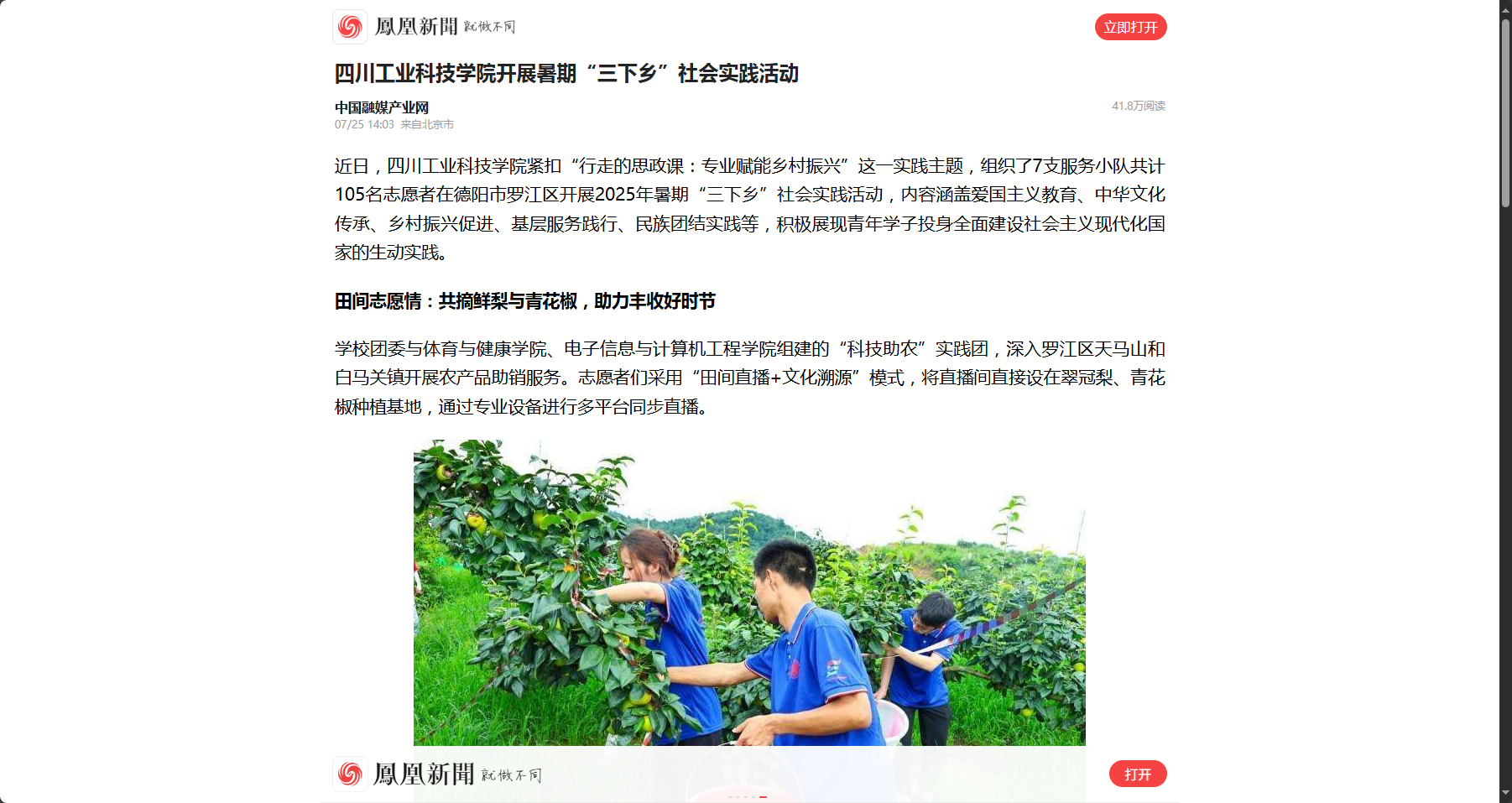 【凤凰新闻】四川工业科技学院开展暑期“三下乡”社会实践活动