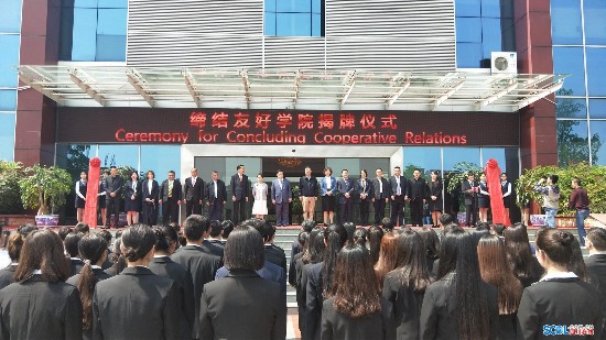 近年来,该校不断探索教育国际化发展路径,先后与德国、美国、英国、澳大利亚、加拿大、马来西亚等国家的教育机构和高等院校建立了广泛的学术交流与人才培养合作机制。聘请德国前副总理兼外长菲舍尔为高级发展战略顾问,并引入德国“双元制”职业教育理念和汽车维修与服务、自动化技术等领域的先进技术教育资源,积极建设中德汽车学院和中德职业技能认证培训中心,为培养高端技术技能人才创造了有利条件。学校与“一带一路”沿线东盟国家老挝的南塔省教育厅签订合作协议,提供全额奖学金招收老挝留学生,为中国—东盟全面战略经济合作培养人才,学校现有老挝、泰国留学生46名。目前,该校还正在筹建四川工业科技学院留学服务中心和四川工业科技学院国际学院。