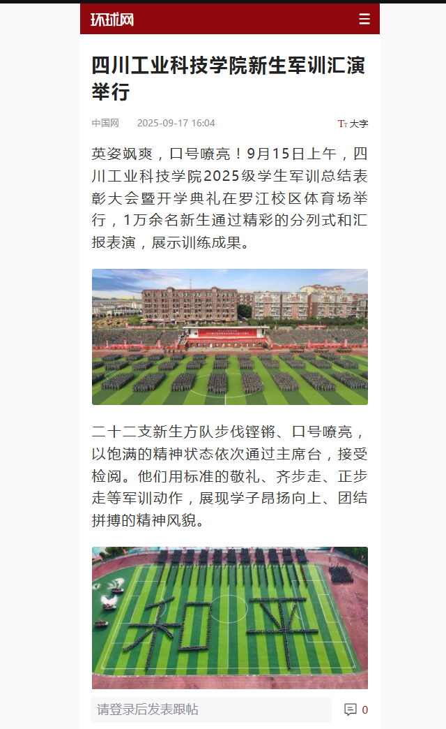 英姿飒爽,口号嘹亮!9月15日上午,四川工业科技学院2025级学生军训总结表彰大会暨开学典礼在罗江校区体育场举行,1万余名新生通过精彩的分列式和汇报表演,展示训练成果。