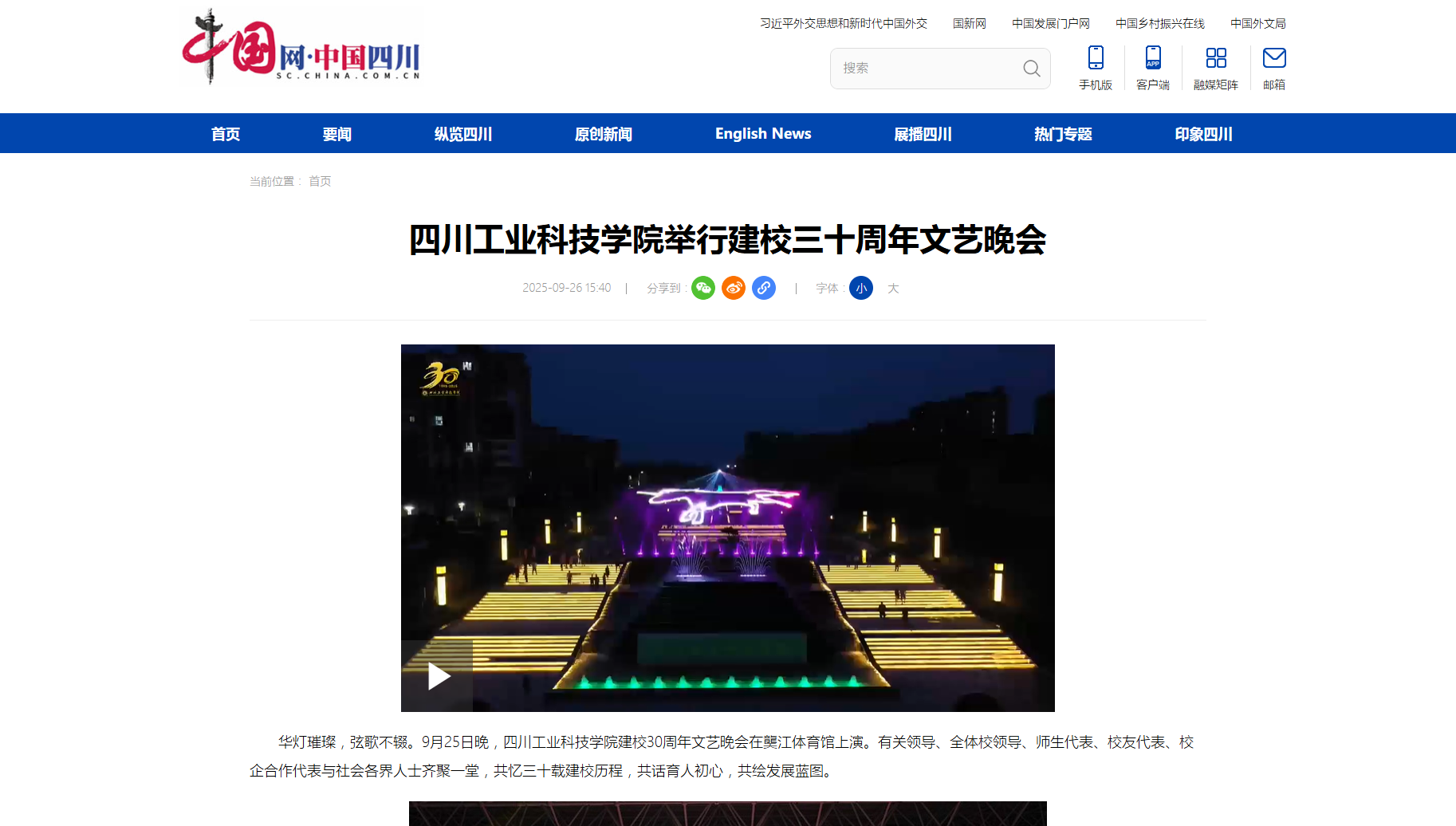 【中国网·中国四川】四川工业科技学院举行建校三十周年文艺晚会