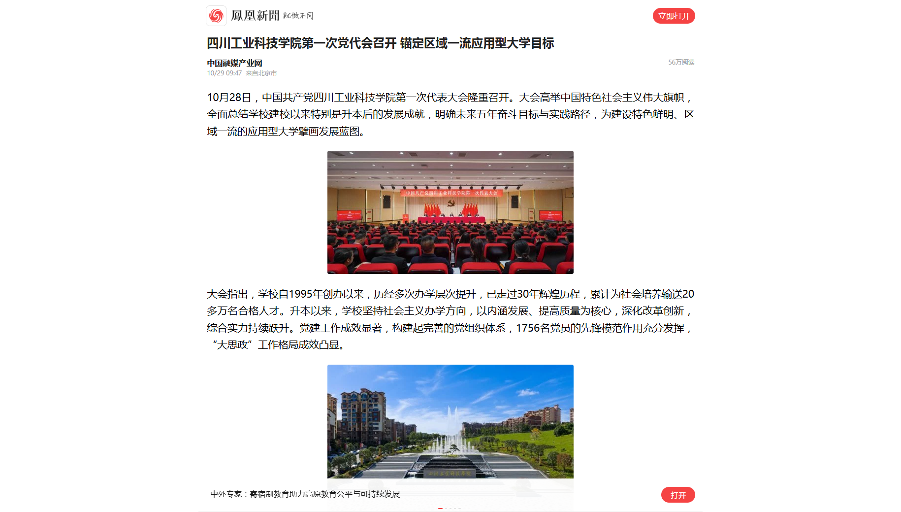 【凤凰新闻】四川工业科技学院第一次党代会召开  锚定区域一流应用型大学目标