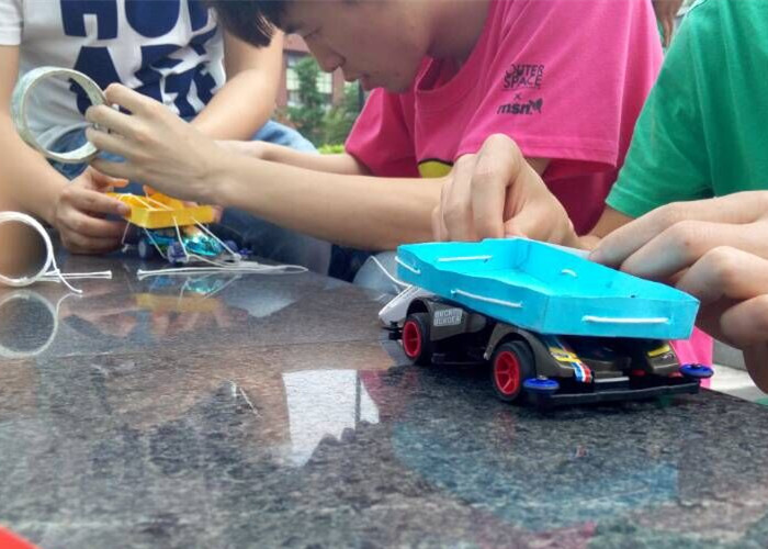 此次比赛选手都为初出茅庐并热爱驱车竞赛的新秀,大家跃跃欲试,预决高低。比赛现场,在裁判的组织下,选手们都拿着自己的四驱车做赛前试车,准备一决高低。赛场上每个同学都竭尽全力,场外的观众纷纷加油喝彩,大家兴致勃勃,全身心地投入比赛当中。