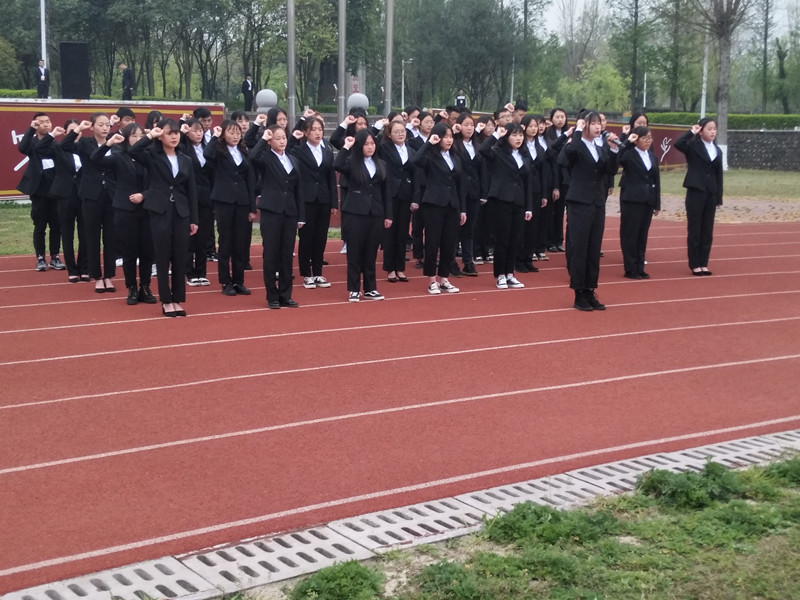 仪式中,绵竹校区由60名学生干部组成的方队在庄严肃穆的国旗下进行宣誓:安全是生命的基石、安全是欢乐的阶梯,安全诚可贵、生命价更高……,同学们气势磅礴的声音响彻校园,为学校安全工作又增添了层防护网。