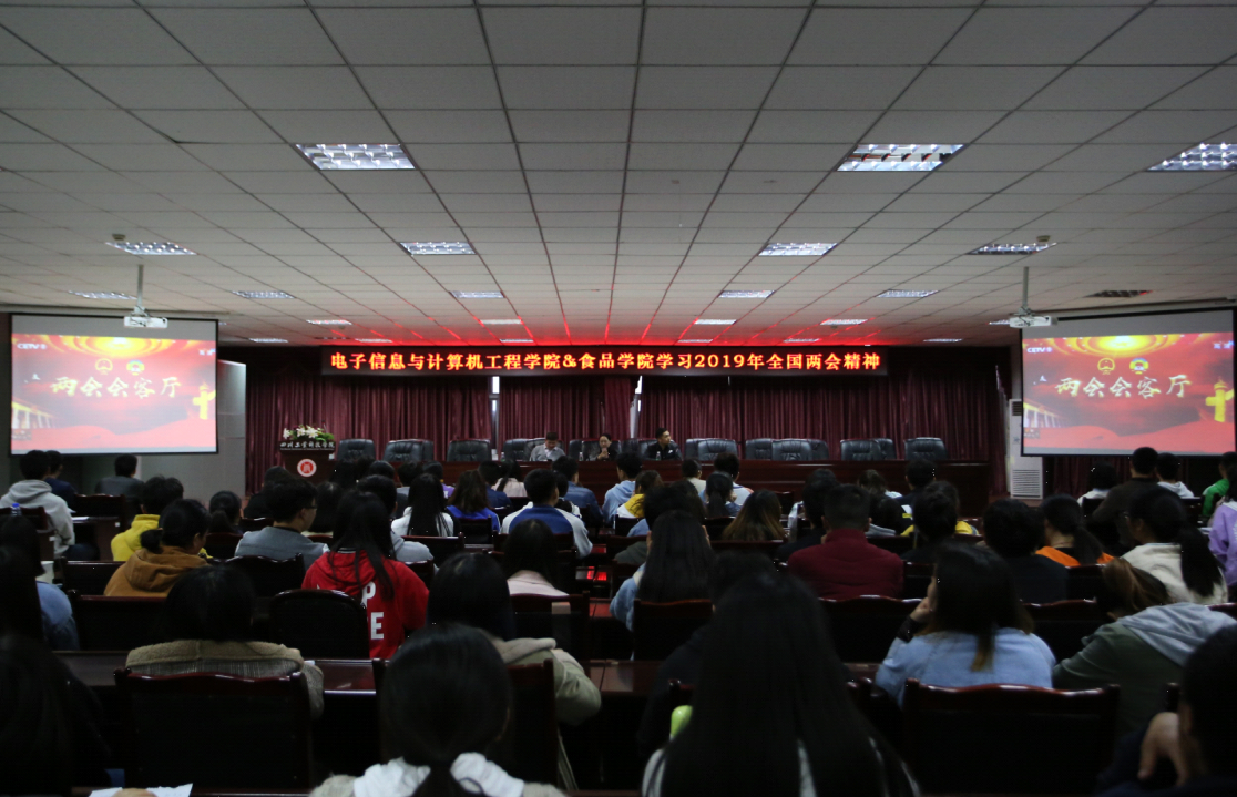为全面学习贯彻全国两会精神,引导学院学生领会和把握两会精神实质,电子信息与计算机工程学院党支部于4月1日在图书馆408会议室开展两会精神学习活动。学院党支部书记龙厚彦、副书记马娟花、组织委员温子辉、宣传委员田小东,全体学生党员、入党积极分子及部分党校学员参加了本次活动。