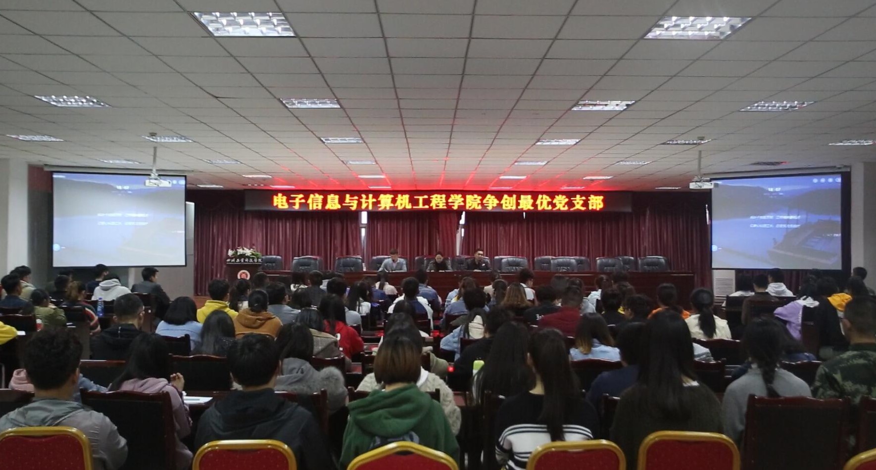 为深入学习贯彻党的十九大精神,不断提高党支部建设质量,充分发挥支部战斗堡垒作用,4月1日,电子信息与计算机工程学院党支部在图书馆408会议室召开争创“最优党支部”动员大会。学院全体师生党员、入党积极分子及全体辅导员参加了本次会议,会议由电子信息与计算机工程学院党支部组织委员温子辉主持。