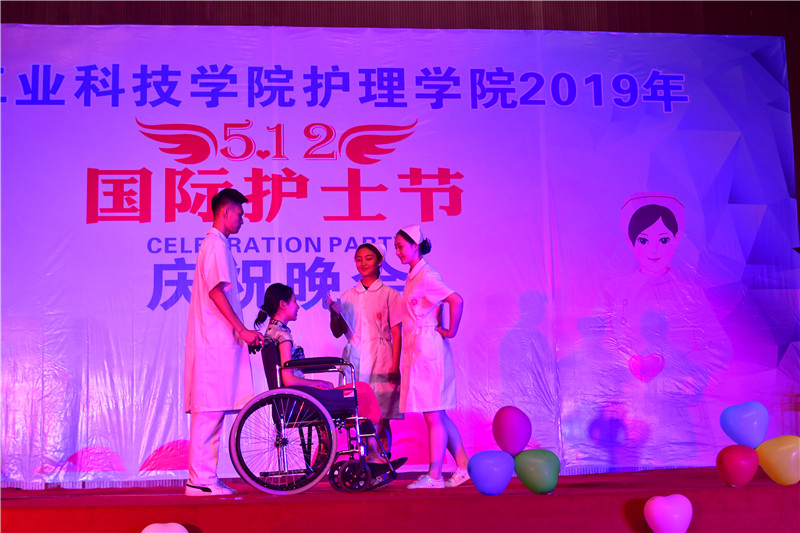 随后,护理学院礼仪队、民族事务部、护理技能大赛中获奖的优胜班级分别带来了护理礼仪展示、民族舞《甘孜踢踏》、情景剧《护士的一天》、护理技能展示《新生儿抚触》、《洗手操》等节目,将护理专业技能展示得淋漓尽致。