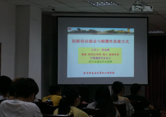 为促进2016级电子信息工程专业毕业生了解就业前景、明确就业方向和树立创新创业的意识,7月23日,电子信息与计算机工程学院特邀中国通信学会会士、四川省通信学会理事、留美学者陈金鹰教授在图书馆408会议室作学术报告,我院2016级电子信息工程专业全体学生及部分教师代表聆听了报告,报告会由学院院长傅成华主持。