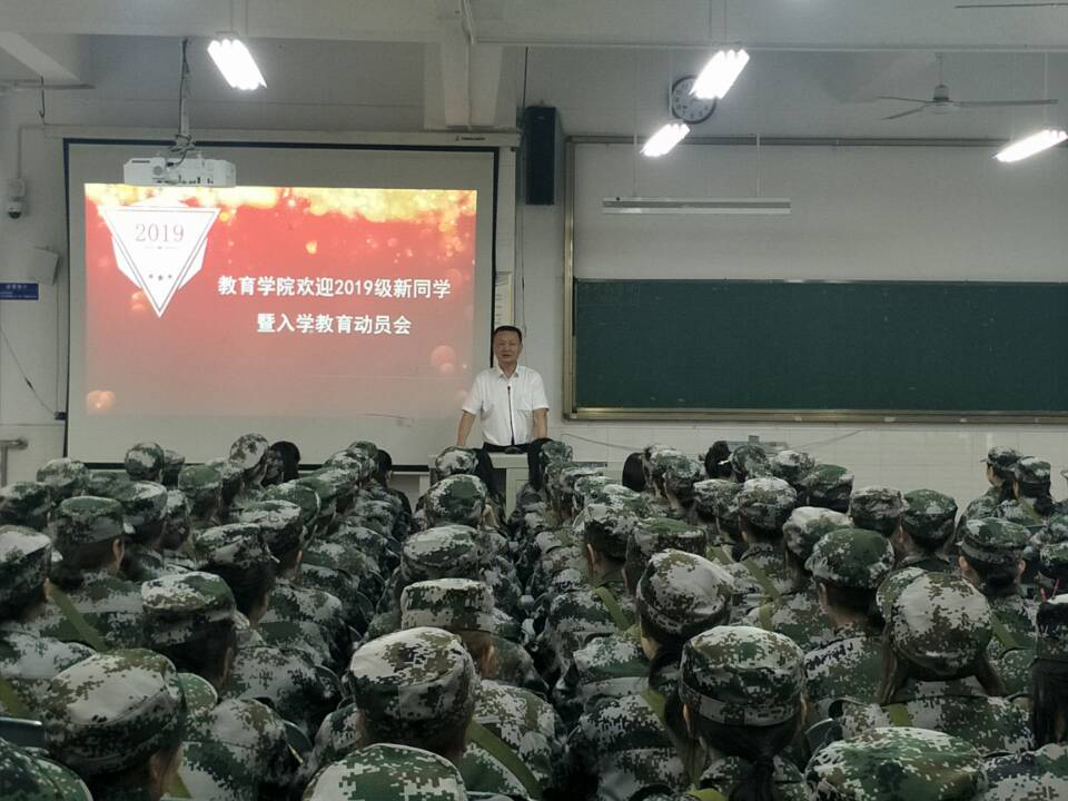 9月2日,教育学院在毓秀楼举行欢迎2019级新同学暨入学教育动员会。教育学院院长吴节义,党支部书记熊定永,教育学院副院长、大学生艺术团团长孙红英,部分教职工以及全体新生参加了本次大会。