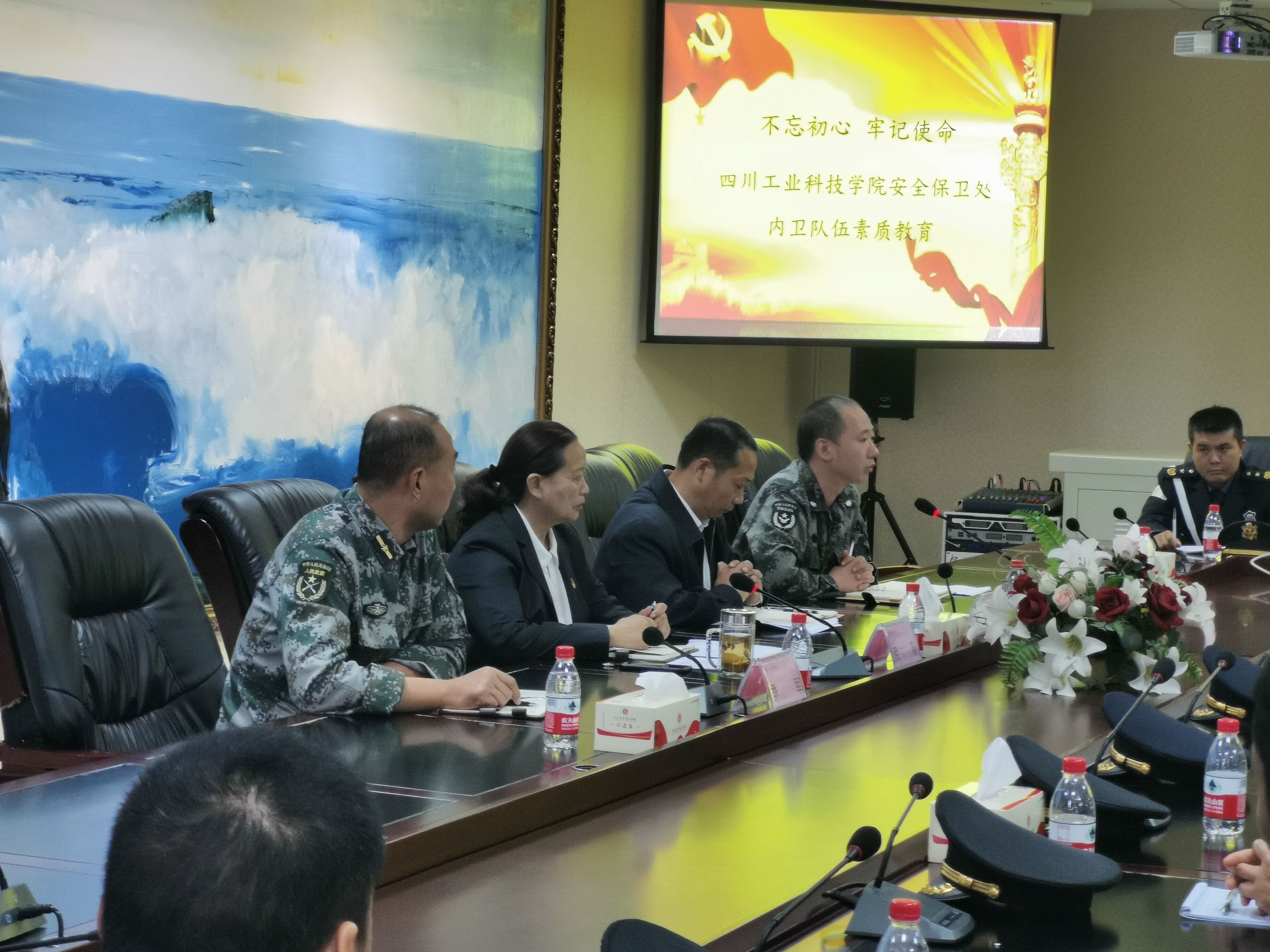 为进一步规范安保内卫队伍建设,提高工作服务质量,树立良好文明的安保队伍形象,提升校园安全管理业务水平,10月13日安全保卫处组织全体安保队员及安全保卫处指导的学生自治管理队伍,在图书馆401会议室进行了“不忘初心,牢记使命”的内卫队伍素质教育培训,培训由安全保卫处副处长白鑫鉴主持。
