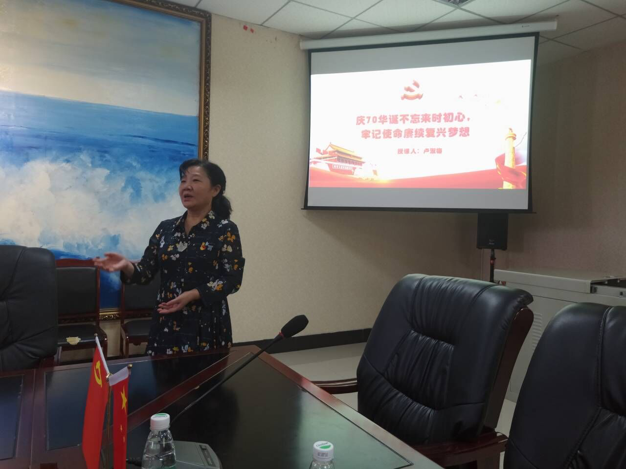 本次党课以“不忘初心 牢记使命 复兴梦想”为主题,党支部书记卢淑梅讲到,“不忘初心、牢记使命”主题教育是在全党范围内开展的主题教育,是推动全党更加自觉地为实现新时代党的历史使命不懈奋斗的重要内容。初心和使命是激励中国共产党人前赴后继、英勇奋斗的根本动力。不忘初心、牢记使命,才能在勇于自我革命中永葆党的先进性和纯洁性。