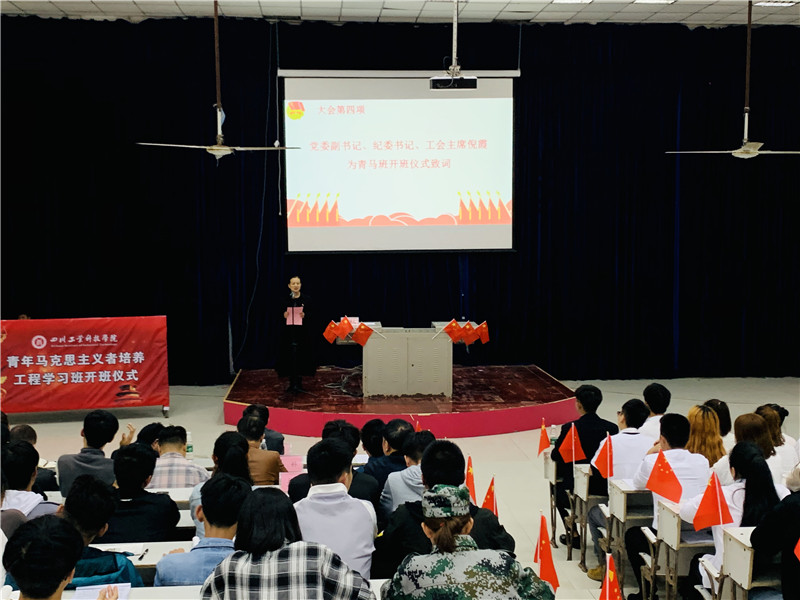 10月23日下午,第二期“青年马克思主义者培养工程”学习班开班仪式在绵竹校区举行。校党委副书记、绵竹校区管委会主任倪霞,绵竹校区管委会副主任、体育学院党支部书记何忠国,学工部部长邓成奉,校党政办副主任、校团委副书记王成鑫出席仪式,各二级学院、教师代表、校团委、学生会主席团和学团联席会相关人员参加,仪式由校团委挂职副书记、“青年马克思主义者培养工程”学习班班主任蒋冰梅主持。
