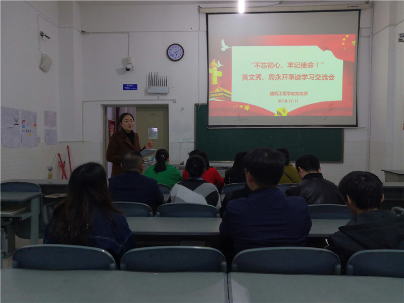 为深入开展“不忘初心、牢记使命”主题教育系列活动,11月11日,建筑工程学院组织学院党员教师开展黄秀文、周永开事迹学习交流会。建筑工程学院全体党员教师参会,会议由杨春主持。