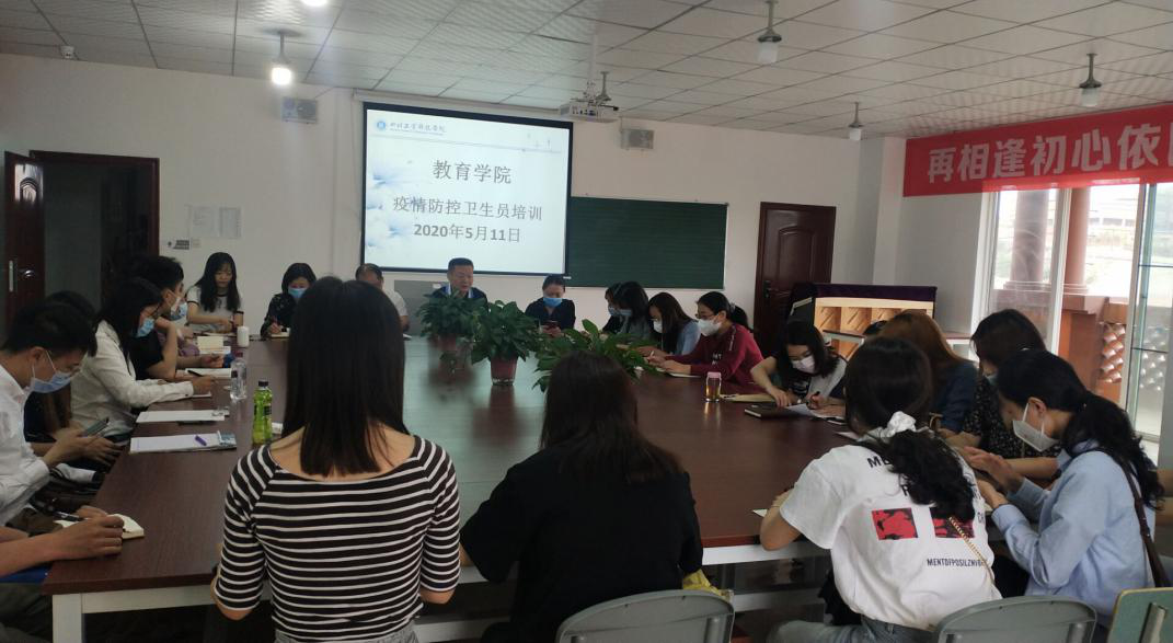 5月11日,教育学院在学前实训中心组织开展疫情防控培训会,学院院长吴节义、党总支书记熊定永、副院长孙红英以及学院全体教师、专兼职辅导员参加培训。学校疫情防控督查组成员刘凤玲受邀到会督查指导。