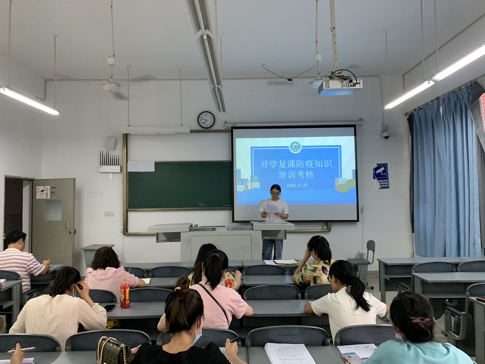 5月20日18:00,学院队全体教师在钟灵401室进行了新冠肺炎疫情防控知识现场培训并进行了现场考核。学院支部副书记杨春,学院辅导员周涛老师先后讲解了新冠肺炎防控基本知识、如何开展适度消毒、校园传染病突发事件处置方式等内容。培训重点介绍了学院师生员工复学前后有关疫情防控工作的具体措施,为全院教师科学防控新冠肺炎提供了专业化指导。