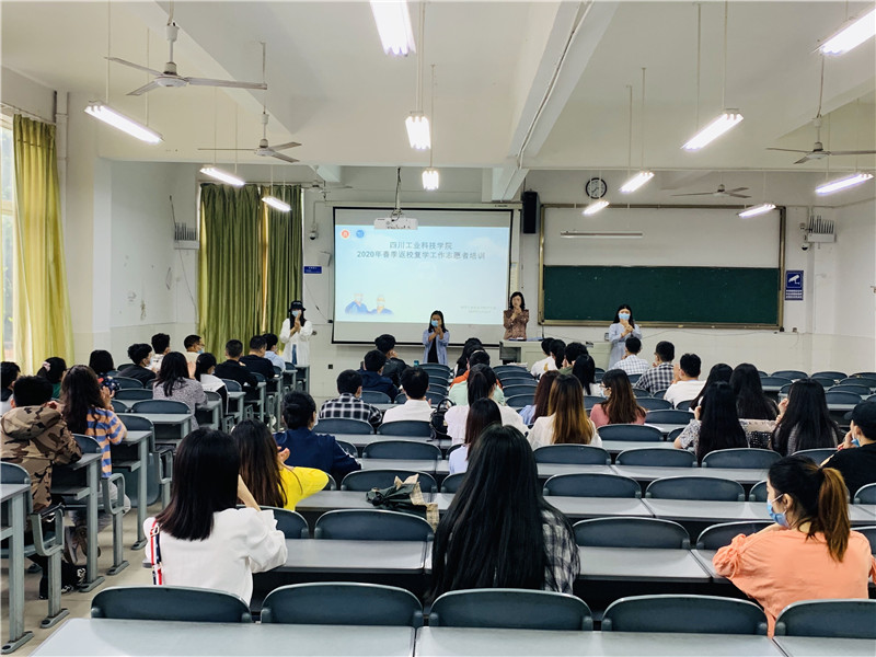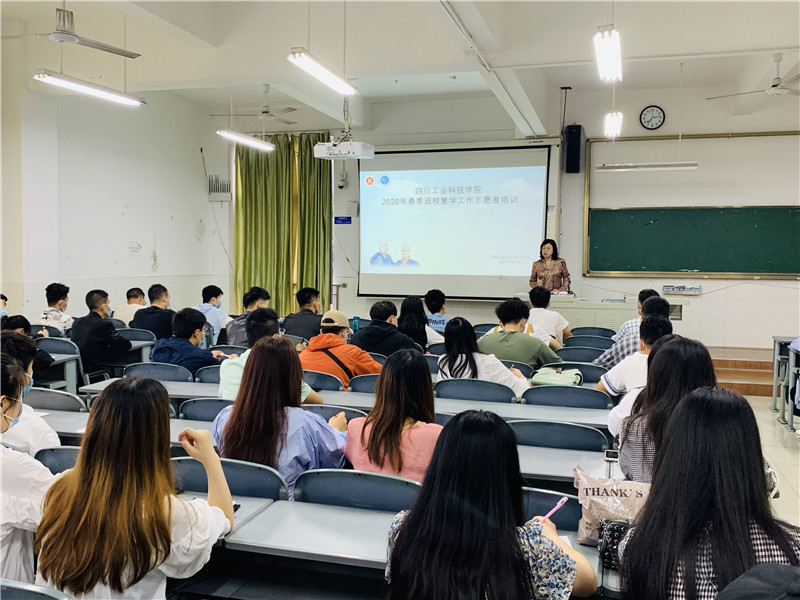 5月24日,校团委在毓秀楼101教室开展2020年春季返校复学工作志愿者培训,由护理学院副院长刘凤玲为志愿者讲解新冠状肺炎防护知识,校团委书记曾晓莉为大家介绍本次志愿者工作的主要内容和相关注意事项。来自校级学生干部、护理学院取得护士资格证的学生以及公寓管理助理50余名志愿者参加了本次培训。学生处副处长魏天强在绵竹校区137教室同时召开了我校志愿者春季复课的培训会。
