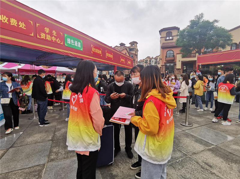 熙熙攘攘的校园里,随处可以看到志愿者们忙碌的身影。在新生入学报到期间,每位志愿者身穿志愿服,胸带志愿者胸牌,为新生指引报到流程。每当遇到有疑问的家长和同学,志愿者就会耐心的为他们解答疑惑,指引方向。