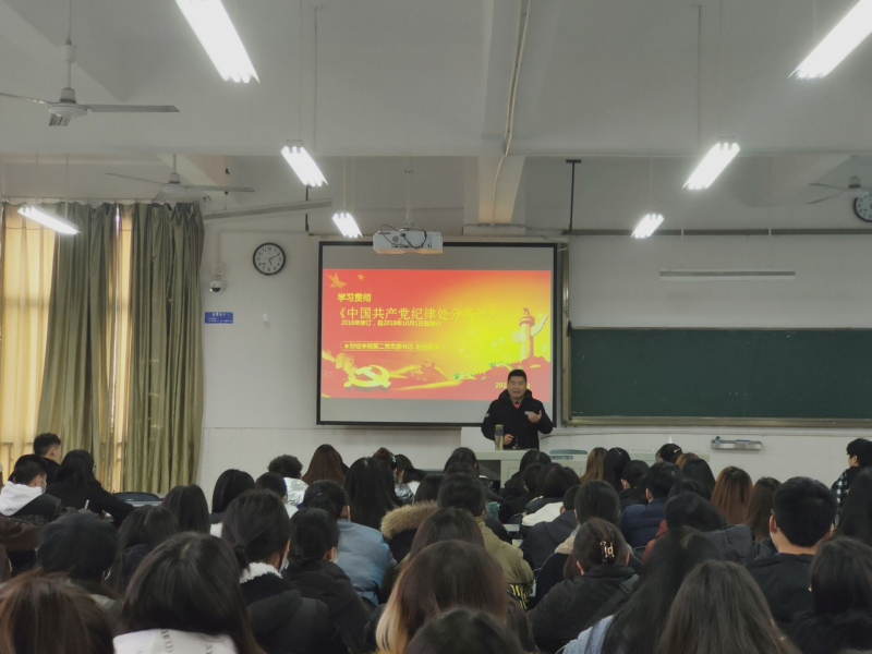 12月18日下午,财经学院于毓秀201开展学习贯彻《中国共产党纪律处分条例》主题讲座,全体入党积极分子参加。本次讲座由财经学院第二党支部书记赵绍雄主讲。