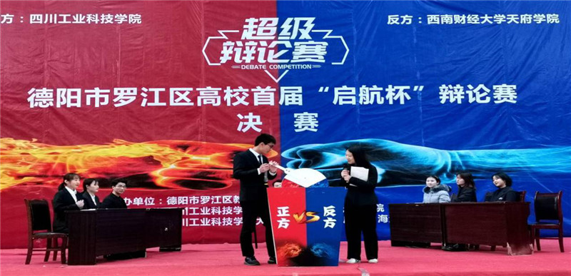 为建设优良学风,丰富同学们的课外活动,培养大家的思辨能力和语言表达能力,2020年12月29日中午,由启航考研独家赞助的第一届罗江区启航杯高校辩论赛比赛决赛在学校校体育馆拉开帷幕。决赛辩题为“这个社会是否是一个看脸的社会”。本次决赛由四川工业科技学院和西南财经大学天府学院两校派队参加,中午12点,场上对战双方各就各位,在主持人王思宇,夏琪简单介绍现场嘉宾及比赛规则后,决赛的序幕正式拉开。