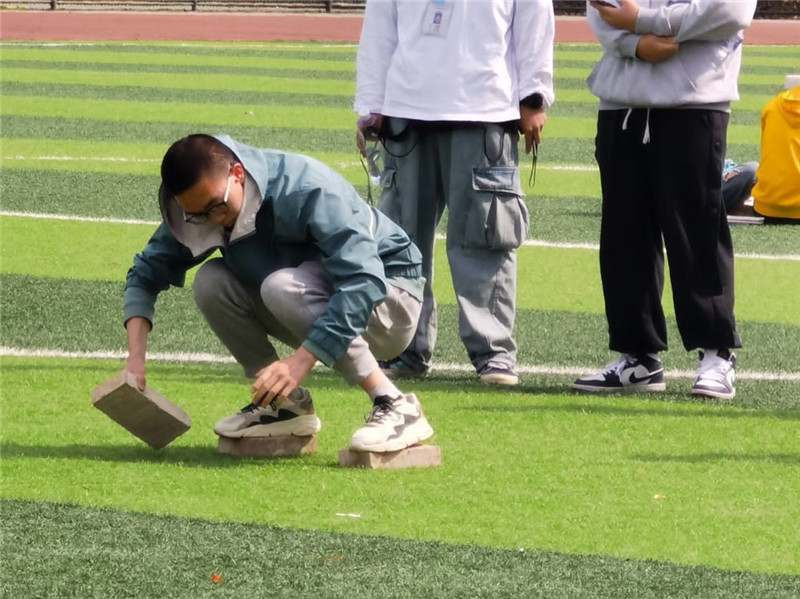 本次趣味运动会共有三个项目:抱气球赛跑、两人三足和砖块赛。在比赛中同学们既秉承着“友谊第一,比赛第二”的竞技精神,既加深了各班同学之间的友谊,又展现了势如破竹的拼搏精神。各班在运动会上展现出了上下一心的团队精神,在比赛中众志成城,誓要为班级夺得荣誉。在场的观众也是欢呼不断,掌声不绝,原本平静的操场沸腾起来。蔚蓝的天空下是年轻学子矫健的身影,青春的朝气感染着在场的每一位。