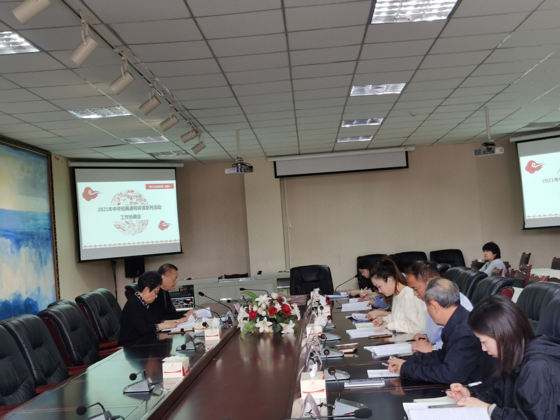 为认真贯彻落实中共中央办公厅、国务院办公厅《关于实施中华优秀传统文化传承发展工程的意见》,落实四川省 2021年“书香天府·全民阅读”活动实施方案,传承中华文明,弘扬红色文化,讴歌中国共产党建党 100 周年光辉历程。根据川语委函〔2021〕1号《关于开展四川省 2021 年中华经典诵写讲演系列活动的通知》精神,学校于4月25日在图书馆召开了2021年中华经典诵写讲演系列活动协调工作会。副校长郭桂萍;宣传部、教务处、学工部、校团委、图书馆、语委办及国际学院、教育学院、创新创业学院相关负责人参加会议。