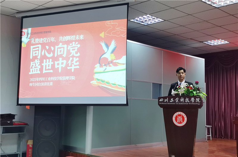 百年华诞,峥嵘岁月;百年党史,历久弥新。为隆重庆祝中国共产党建党100周年,重温党的光辉历程,歌颂党的伟大成就,继承和发扬党的优良革命传统,充分展示当代大学生的爱党爱国爱社会主义的深厚情怀。2021年5月8日下午3点,管理学院于图书馆D—408隆重举行“同心向党、盛世中华”演讲比赛决赛,选手们以爱国、青春、母爱为主题展开各自的演讲,来表达对党的热爱。本次比赛由管理学院学生权益部干事主持,管理学院院长王进、党总支副书记张东国、团总支书记邓卜豪、管理学院教学办主任谢健、辅导员魏欢、学生会副主席徐晓蝶担任决赛评委,管理学院部分学生代表观看本次比赛.