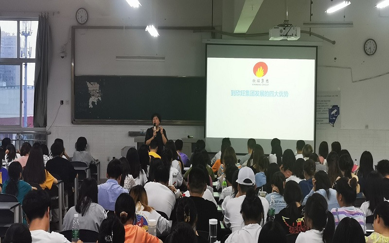 宣讲会上,赵绍雄首先对远道而来参会的欣旺集团代表表示了热烈欢迎。其后,他指出希望通过到校宣讲的方式,为即将步入大四学年的2018级学子们搭建创业平台,拓宽就业渠道,提高学生的实践能力,实现校企双方互利互惠的共赢局面。随后,欣旺集团的企业代表上台向学子们讲述了在欣旺集团发展的四大优势,并向同学们展示了集团强劲的中和实力与美好的发展前景。她表示在经济快速发展的今天,人才的发掘与培养对于企业发展的关键性作用。在讲话的最后她对想要加入集团的学子表示诚挚的欢迎。在场的学子们也感受到了欣旺文化的魅力。