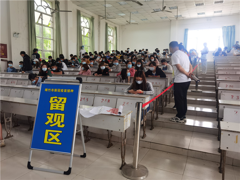 为做好新冠疫情防控工作,全面预防新型冠状病毒肺炎疫情在学校出现和传播,确保同学们能以健康的精神面貌投入到日常学习中。5月17日,我校绵竹校区体育学院组织全体师生开展新冠疫苗接种工作。