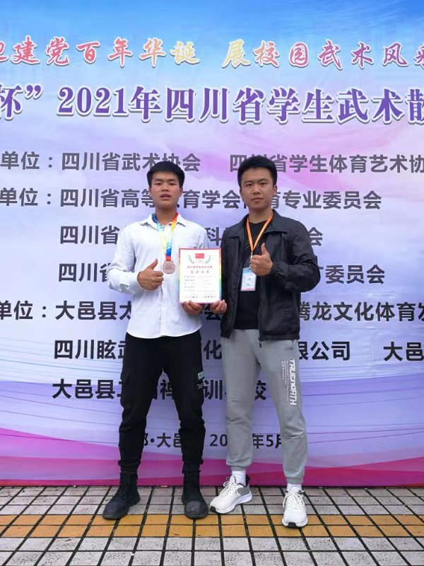 5月21日至22日,2021四川省学生武术散打公开赛在成都大邑开展,这是学校首次参加武术散打公开赛,时间紧、任务重,学生们面对的不仅是大规模的赛事、全新的场地,更多的是来自四川省20多所高校的优秀运动员同场竞赛。在这种情况下,选手们赛前利于课余休息时间刻苦训练,在赛场上不畏强手,克服困难,发挥出了应有的水平,充分展现学校学子的风采。