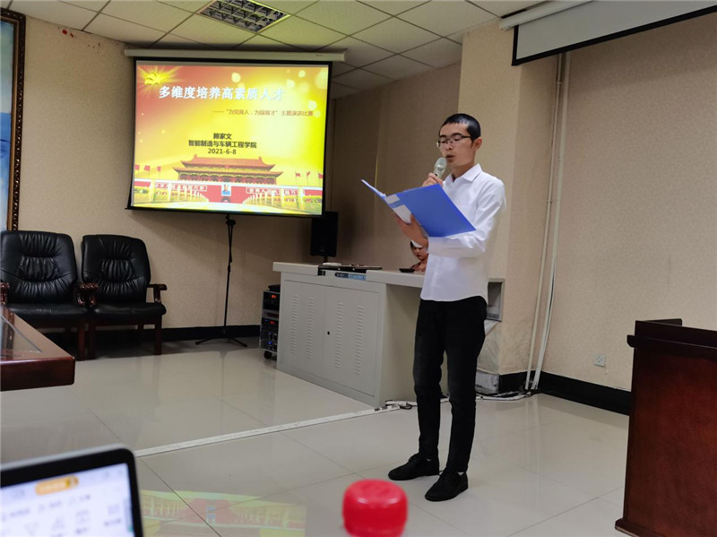 智能制造学院赖家文老师在演讲中提到应多维度培养高素质人才,加强对大学生的思想政治教育,注重学生道德情操的培养,培养学生应有的职业素养。