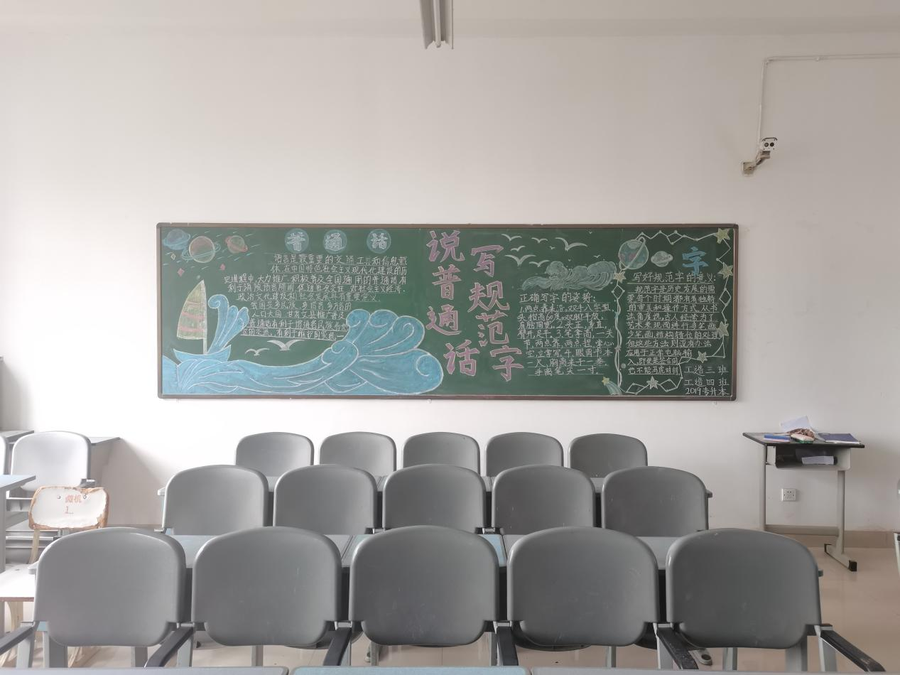 3. 各二级学院在各专业班级间,组织开展了“普通话诵百年伟业,规范字写时代新篇”主题班会,主题班会涉及知识普及、ppt讲解、知识抢答、绕口令比赛,诗歌朗诵等环节,同学们在班会主题上认真听讲,做好笔记并积极参与其中。